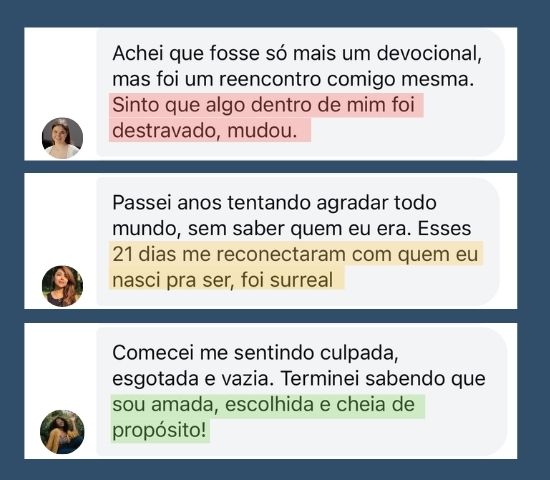 Uma mulher curada, leve, confiante, que sabe quem é em Cristo e vive com propósito.